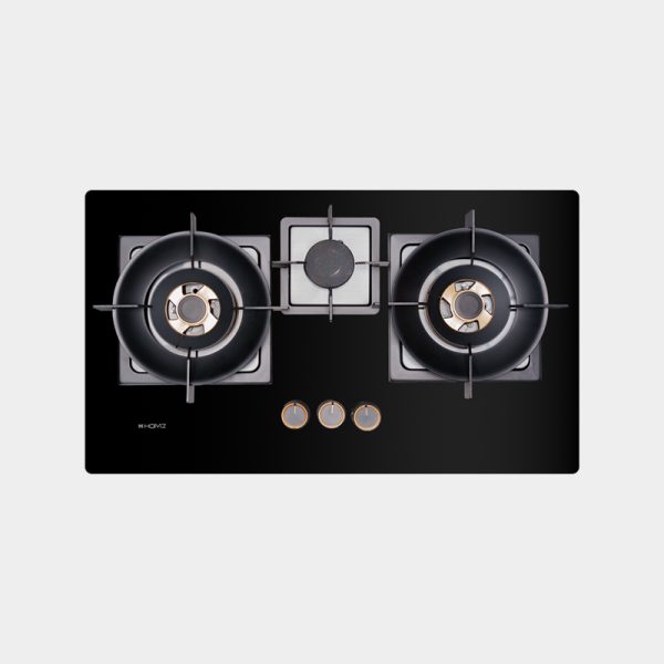 Homz 3‑Burner Glass Gas Hob HMZ‑7603BRG – High-Efficiency Brass Burners